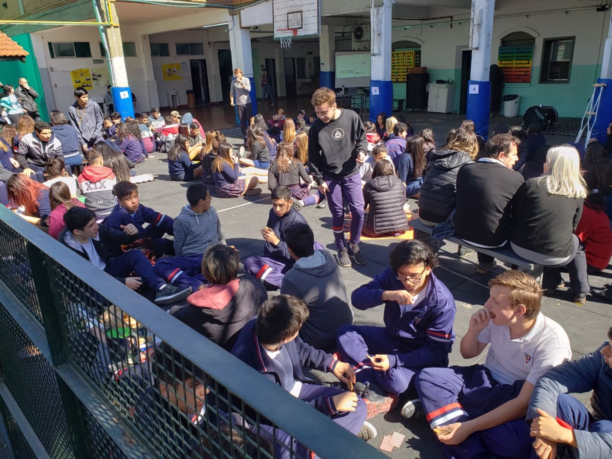 Los estudiantes del nivel Secundario disfrutaron de un espacio de juegos interactivos, música en vivo y mateada en el patio del colegio.