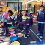 Cada gado del primer ciclo del nivel Primario compartió con alumnos de otras divisiones un espacio de juegos rotativos con desafíos motrices y de cooperación.