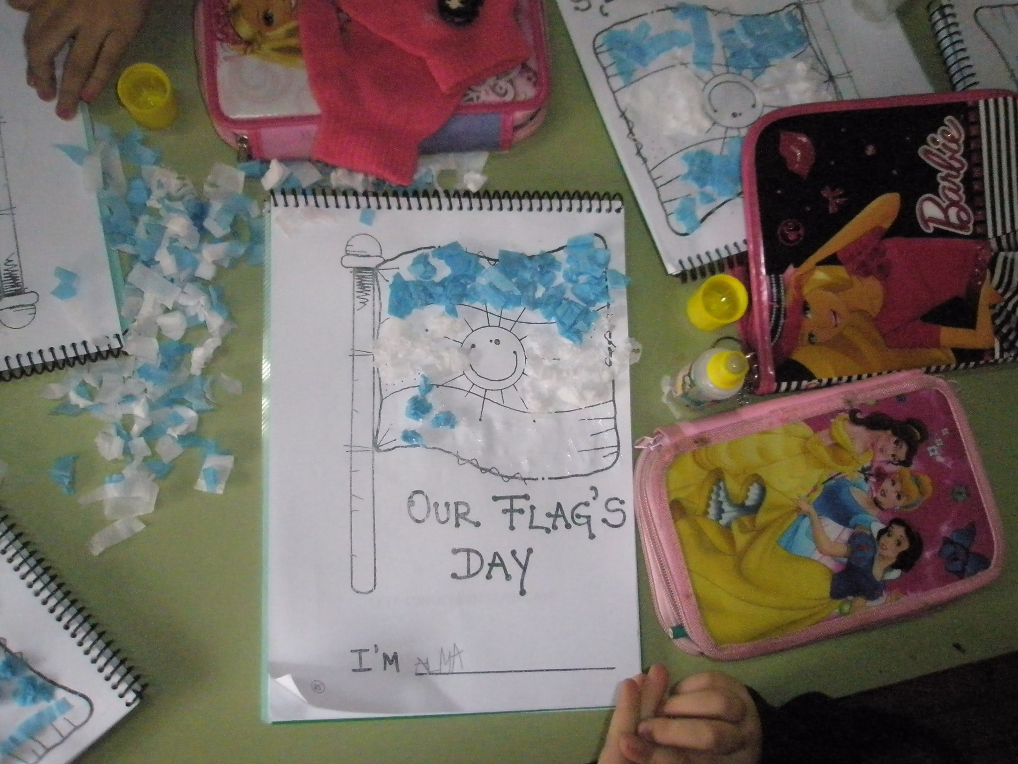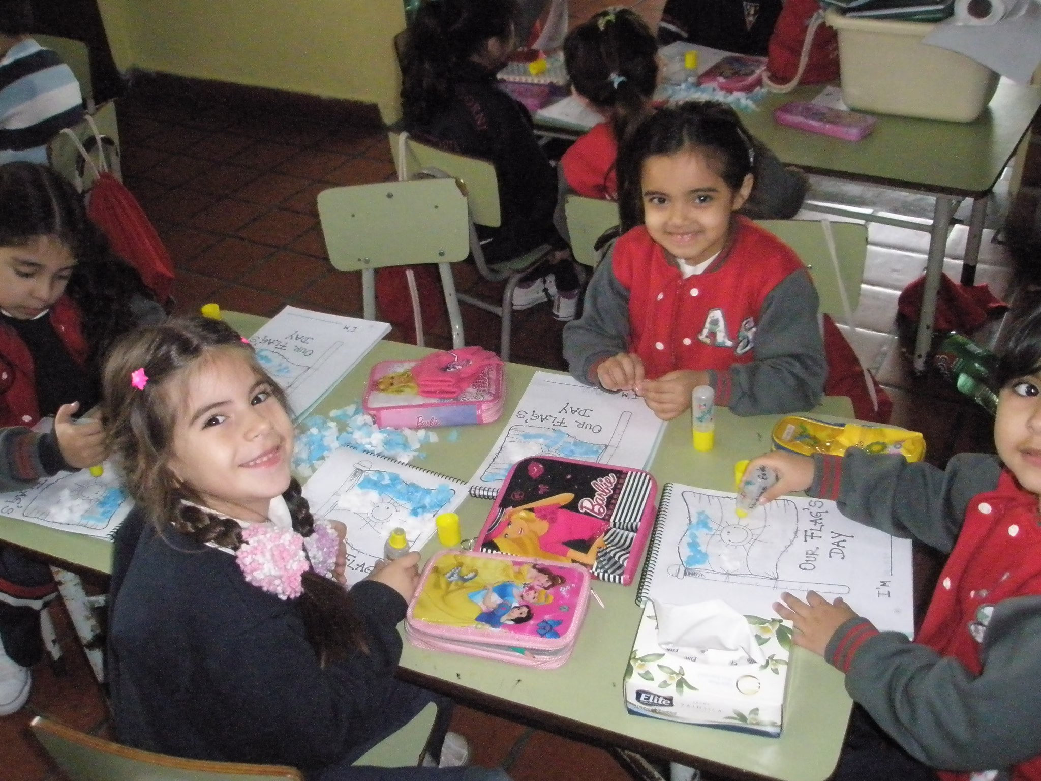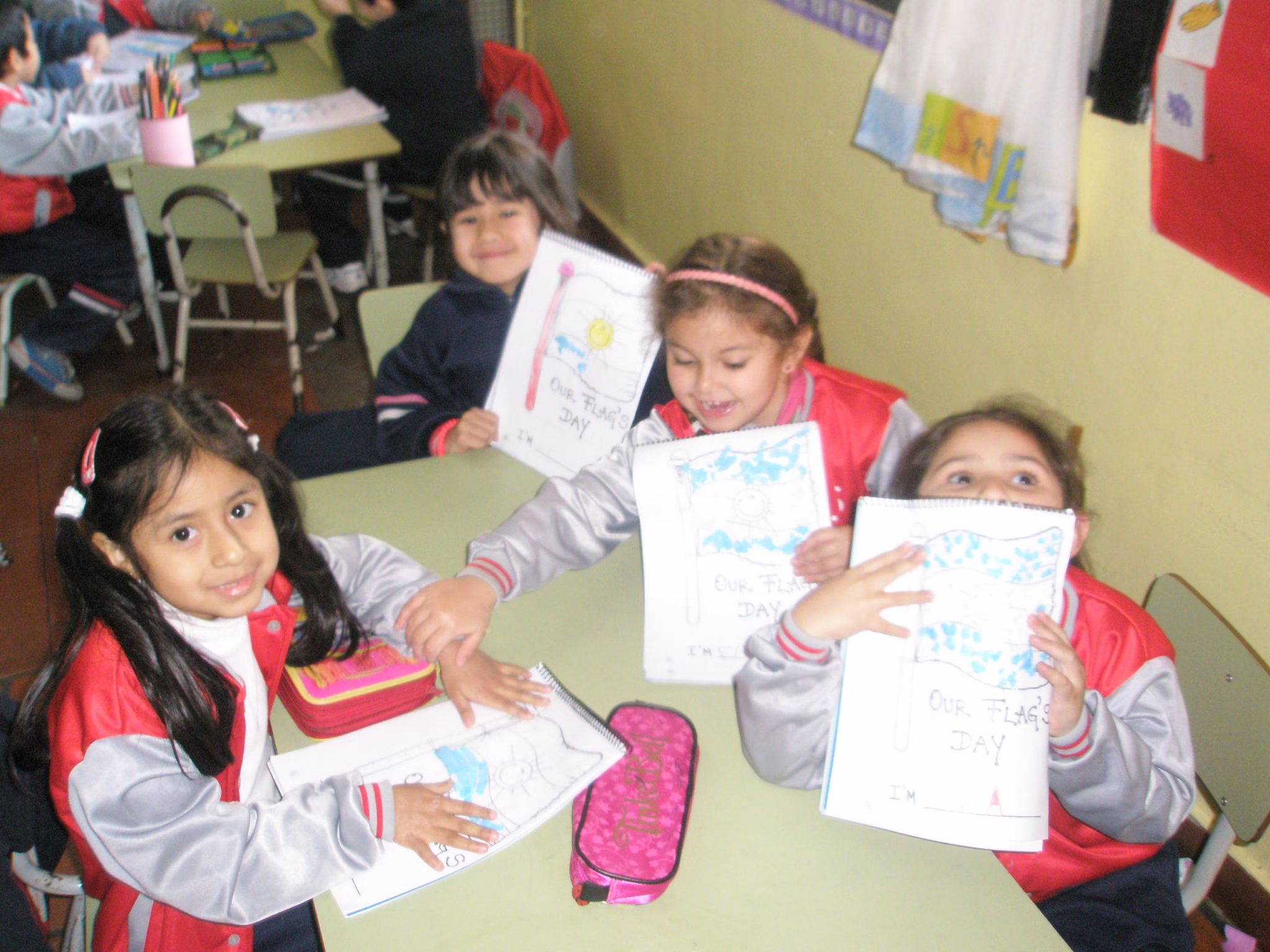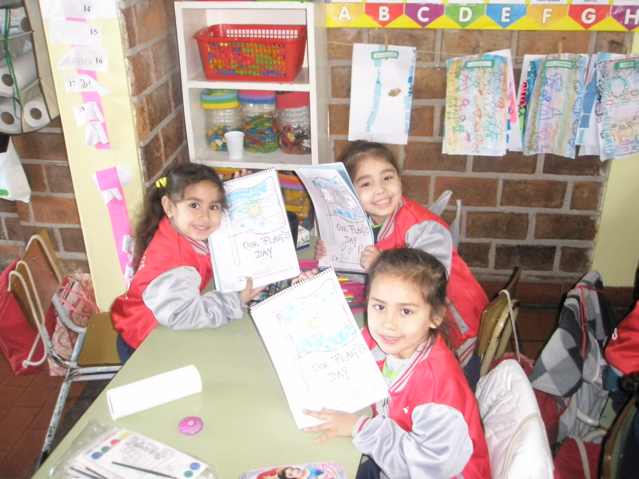 Así celebramos el día de nuestra bandera los nenes de sala azul y sala verde junto a Miss Barby.
