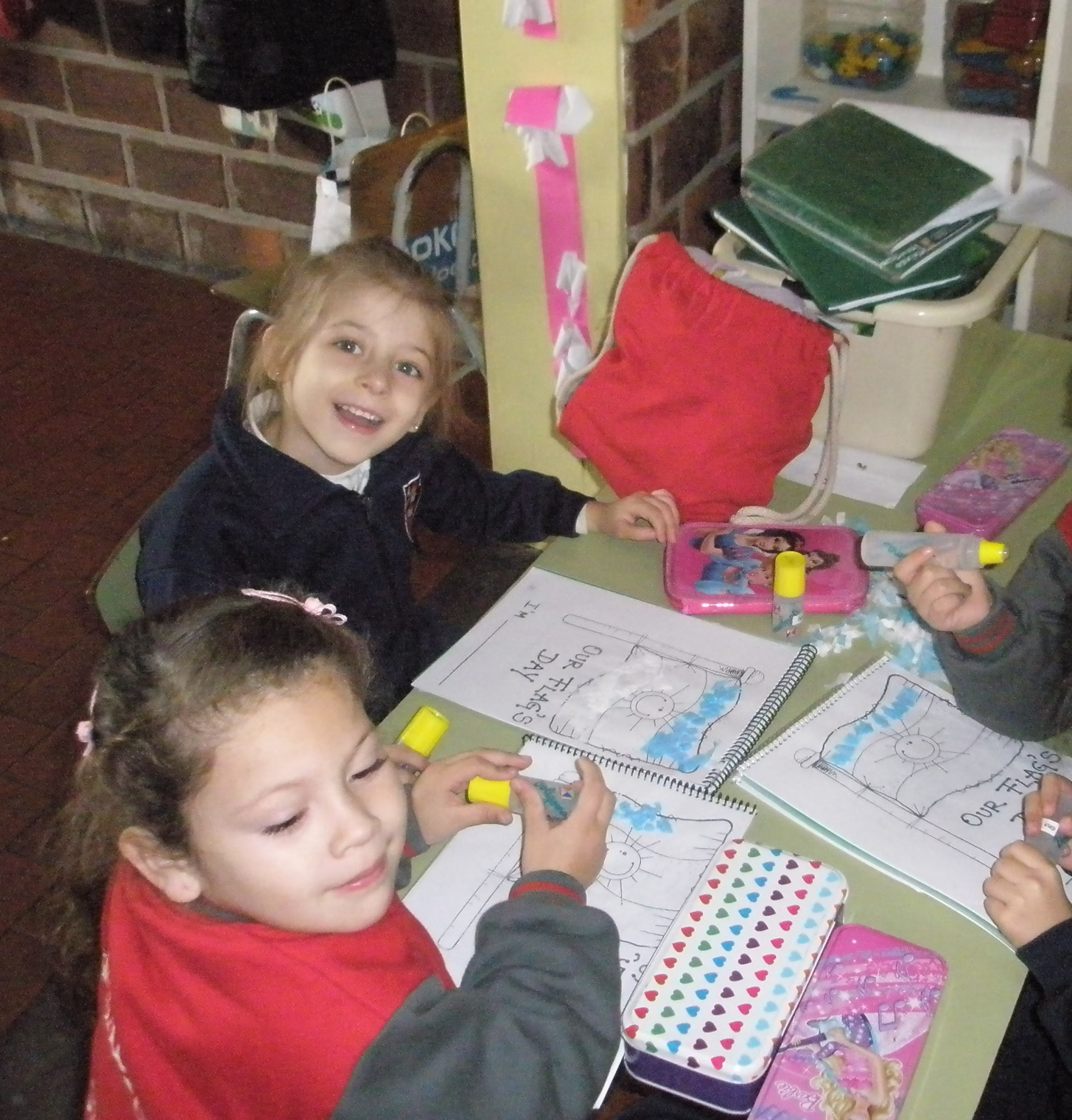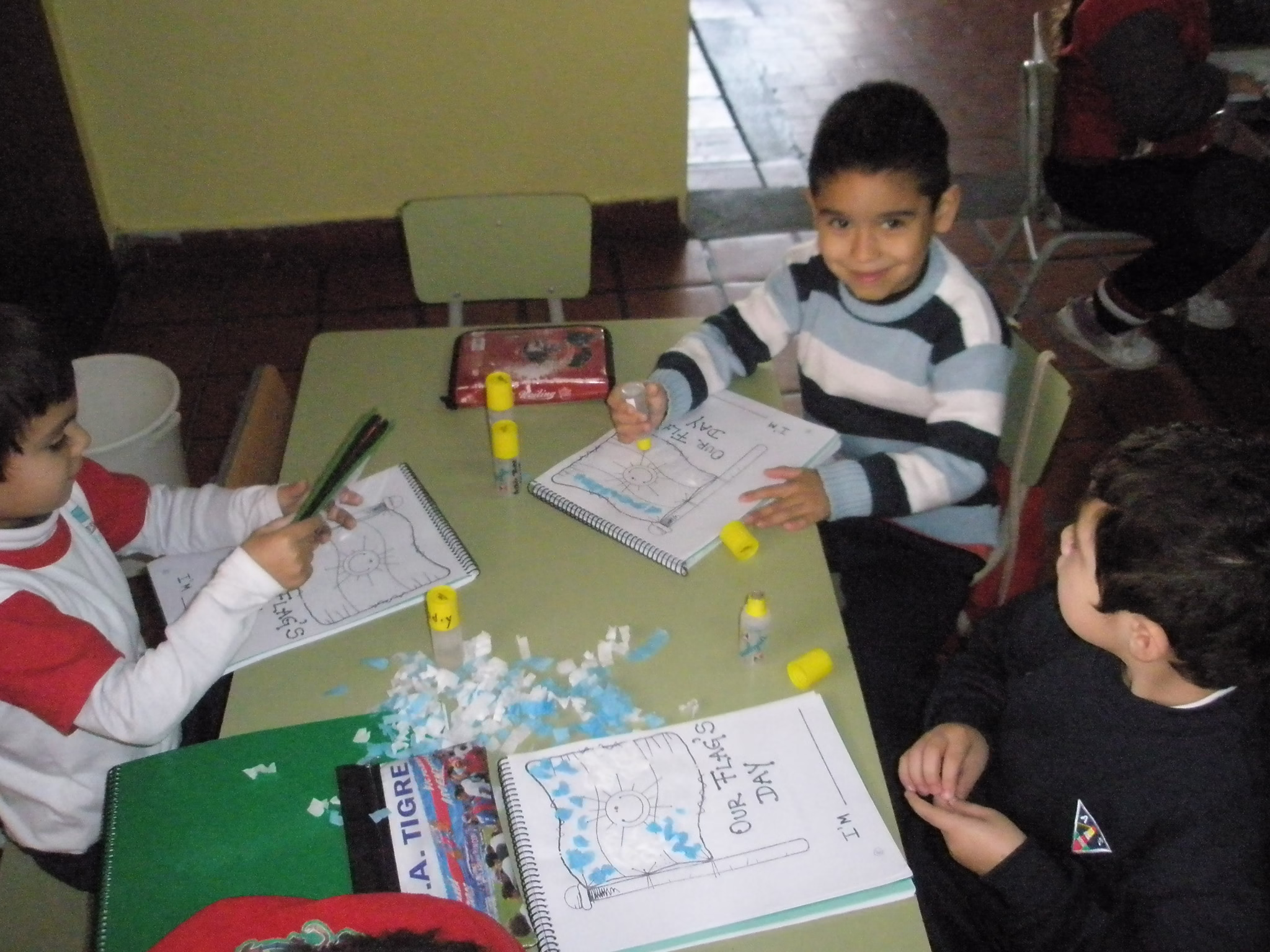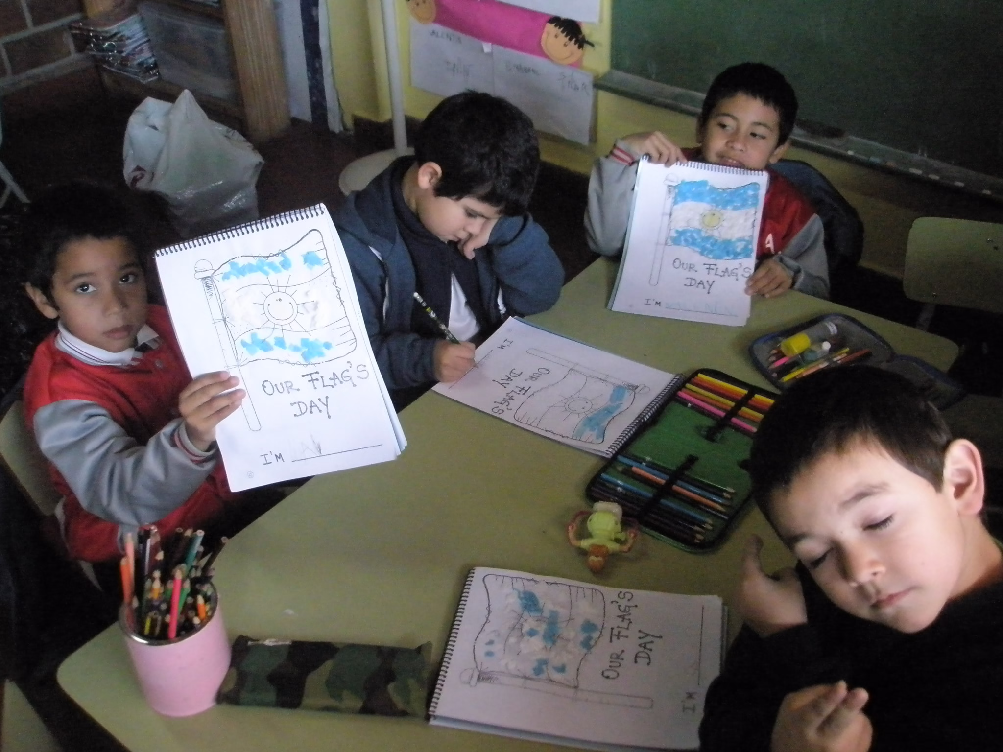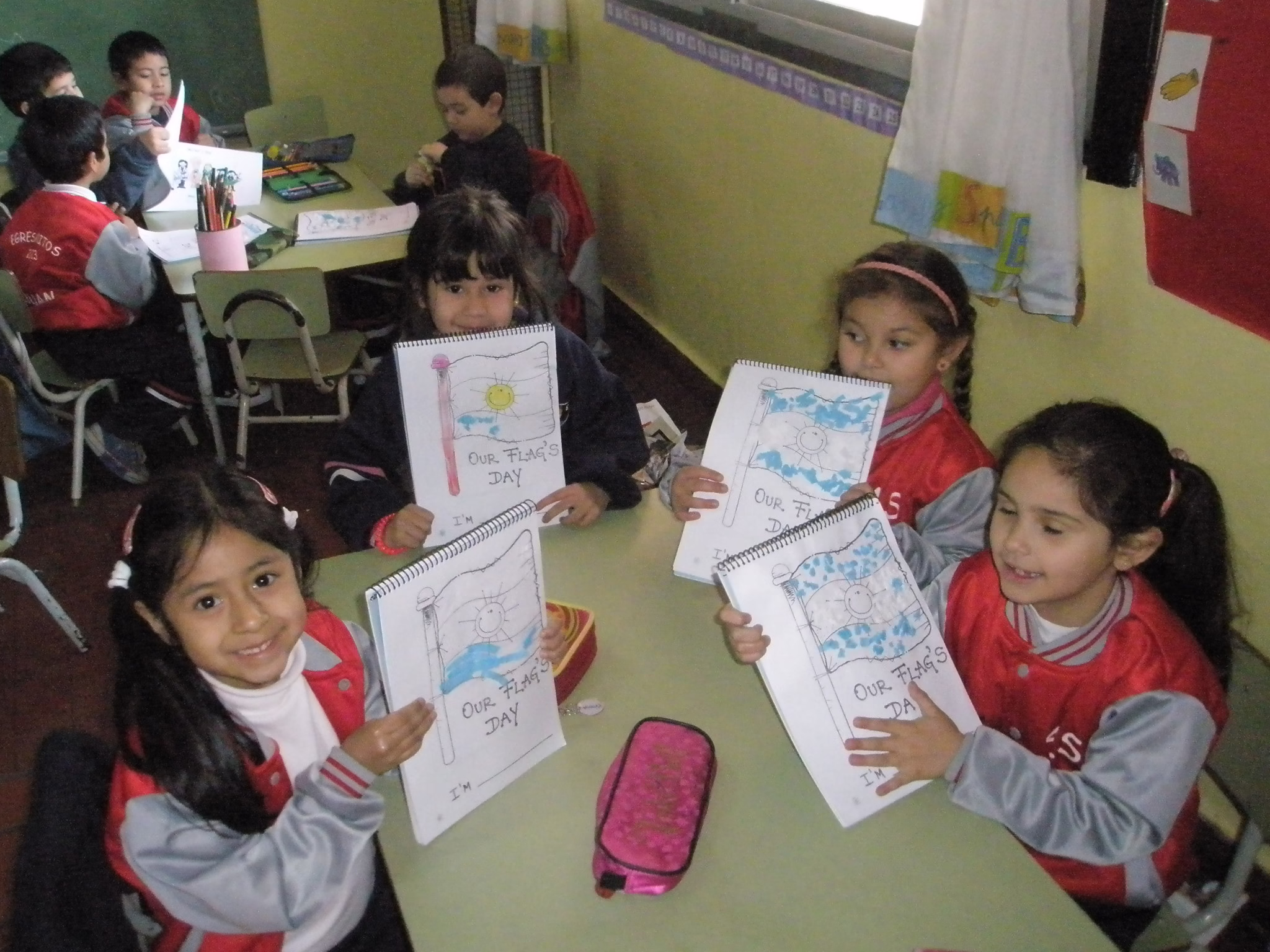 Así celebramos el día de nuestra bandera los nenes de sala azul y sala verde junto a Miss Barby.