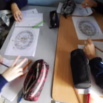 Asimismo, los alumnos de 5°B trabajaron el tema cónicas: circunferencia, elipse, parábola, hipérbola donde a partir de una sencilla experiencia con linternas y hojas simulaban con la luz un cono y con la hoja, el plano.