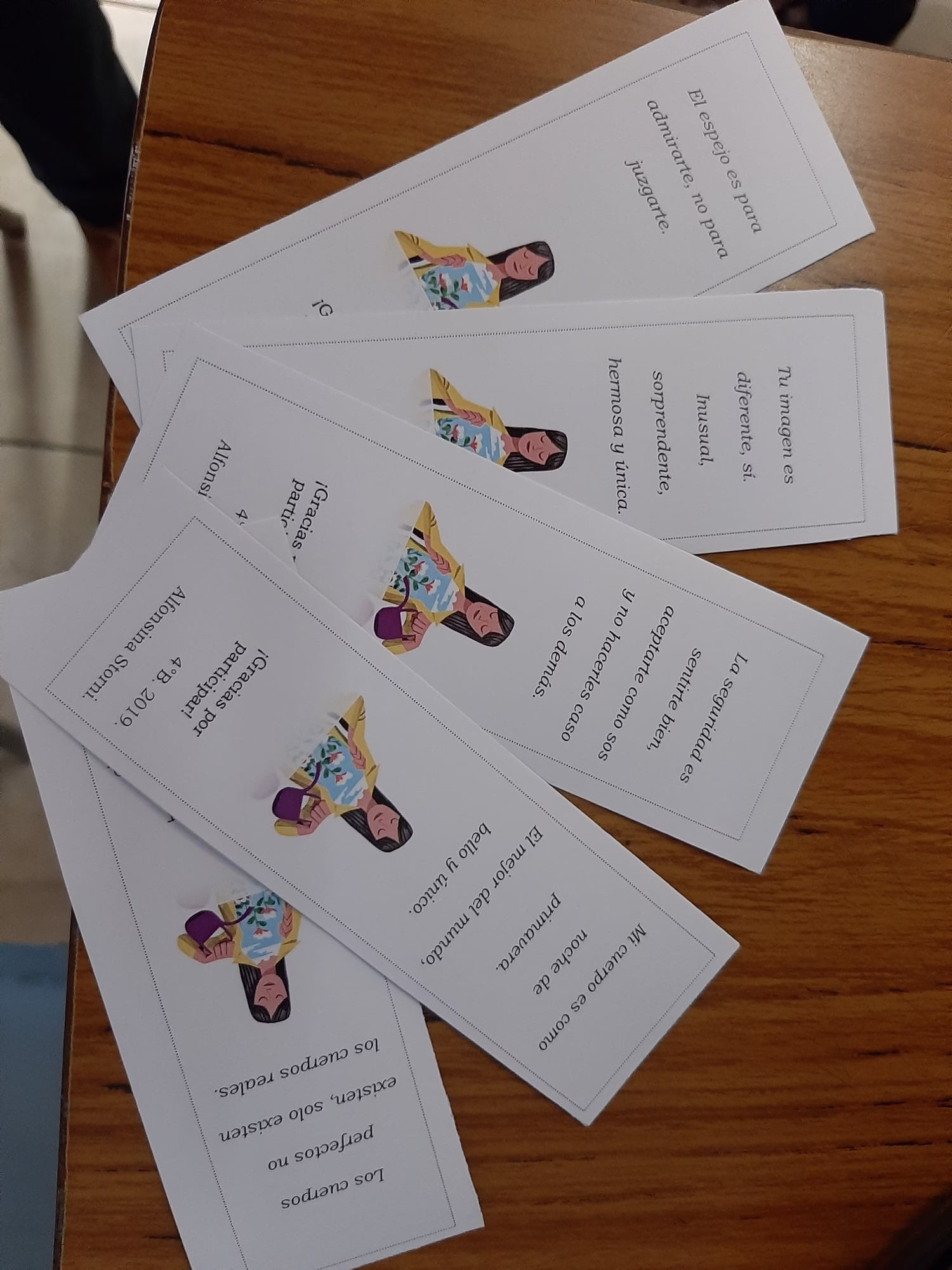 Una vez finalizada la actividad, se entregó a los presentes un señalador con fragmentos de poemas alusivos realizados por los chicos de 4° con la profesora de Literatura.